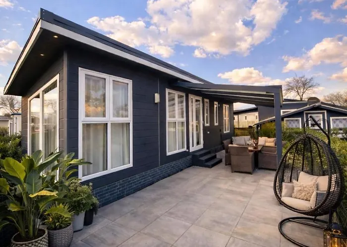 Luxus Chalet Im Schonen Recratiepark De Veerstal别墅距离雷登市中心有2公里,为旅客提供海滨住宿,休闲设施包括日光浴,阳光露台 和凉亭. 此别墅设有保险柜,相邻露台 和沙发,共有2间卧室,室内配套设施齐全.